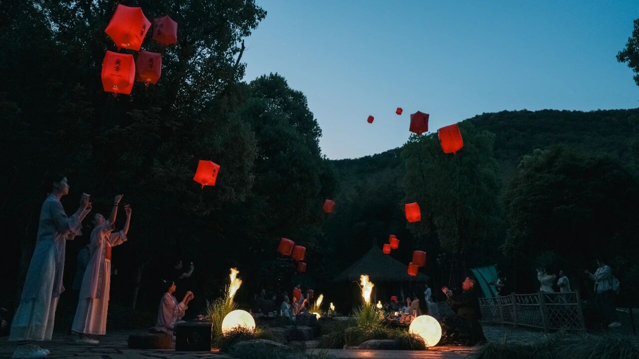 活动尾声,嘉宾们在天章寺旁放灯祈愿。正如主持人所说,那天下午,王羲之真的在场——身体在这里,心也在这里。